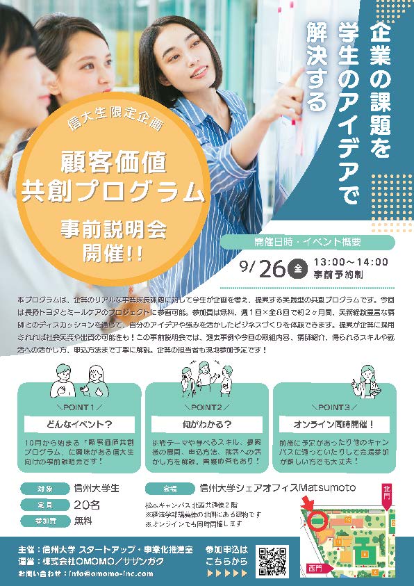 10月から始まる「顧客価値共創プログラム」に興味がある信大生向けの事前説明会🔥