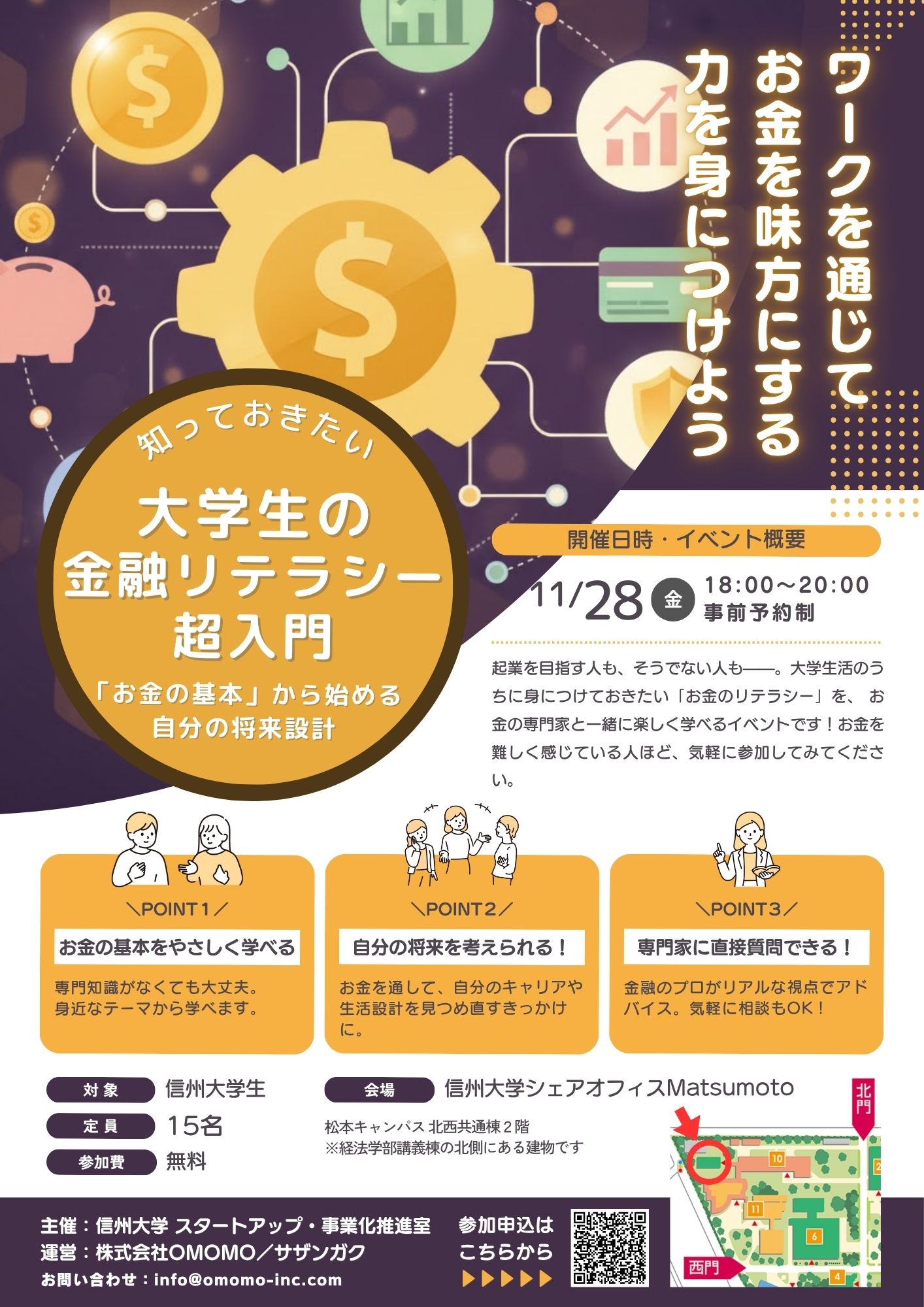 起業を目指す人も、そうでない人もーー。大学生活のうちに身につけておきたい「お金のリテラシー」を、お金の専門家と一緒に楽しく学べるイベントです!お金を難しく感じている人ほど、気軽に参加してみてください。